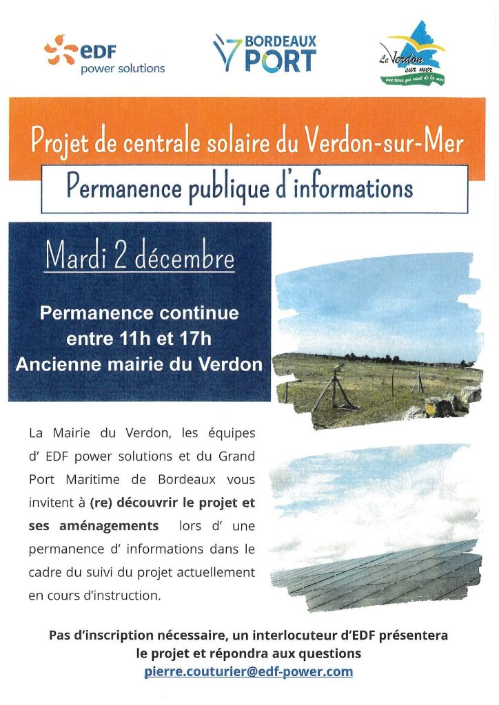 Projet centrale solaire au Verdon sur Mer : permanence publique